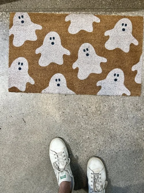 Step into a world of eerie enchantment with this ghosts doormat, a bewitching creation curated by The Plant Gays, Aidan, and David. Crafted with care in the United States, this 30" x 18" x 1" brown doormat, adorned with playful white ghosts, invites you into a realm where every creak and whisper feels like a ghostly greeting. Embracing the spirit of Halloween, this doormat adds a touch of spooky elegance to your doorstep, making your home feel a little more haunted and mysterious. Rooted in the heart of Columbus, Ohio, The Plant Gays are passionate about transforming spaces. While their expertise lies in plants, their creative flair knows no bounds, extending to unique and enchanting products like the ghosts doormat. Each step on this mat reminds you that your home can be a place where the mundane meets the magical, making every visitor feel like they're stepping into a haunted tale.
